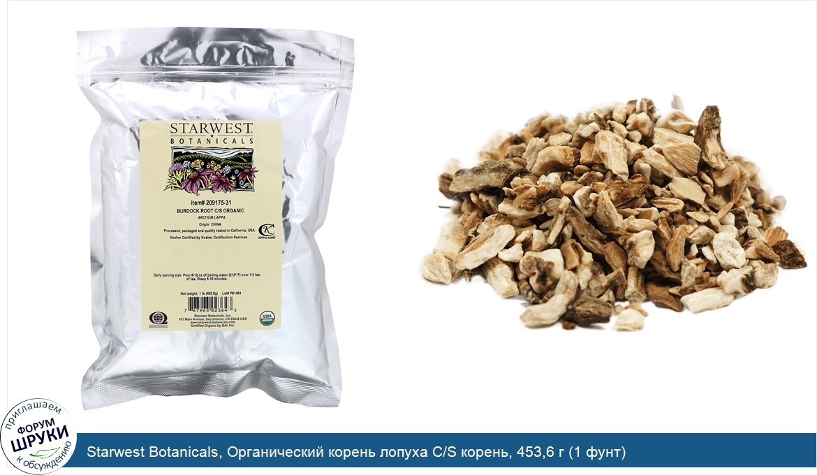 Друзья, если у вас есть отзыв/дополнение/комментарий/вопрос относительно Starwest Botanicals, Органический корень лопуха C/S корень, 453,6 г (1 фунт) - напишите его ответом в эту тему (это будет полезно всему сообществу в целом и вам в отдельности).