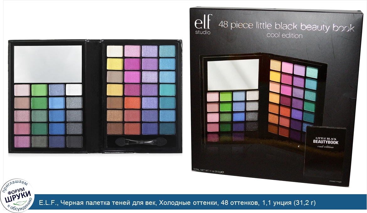 Друзья, если у вас есть отзыв/дополнение/комментарий/вопрос относительно E.L.F., Черная палетка теней для век, Холодные оттенки, 48 оттенков, 1,1 унция (31,2 г) - напишите его ответом в эту тему (это будет полезно всему сообществу в целом и вам в отдельности).
