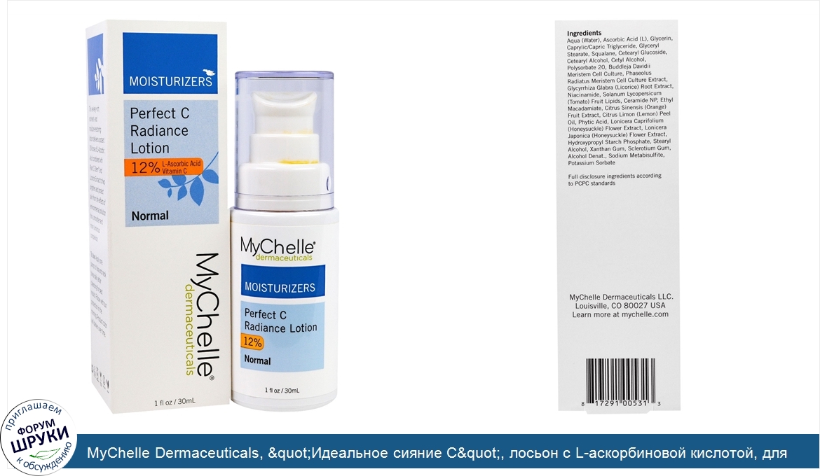 Друзья, если у вас есть отзыв/дополнение/комментарий/вопрос относительно MyChelle Dermaceuticals, "Идеальное сияние C", лосьон с L-аскорбиновой кислотой, для нормальной кожи, 1 жидкая унция (30 мл) - напишите его ответом в эту тему (это будет полезно всему сообществу в целом и вам в отдельности).