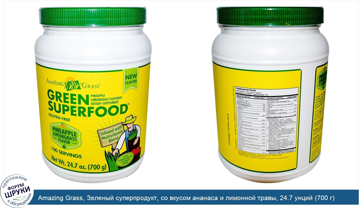 Друзья, если у вас есть отзыв/дополнение/комментарий/вопрос относительно Amazing Grass, Зеленый суперпродукт, со вкусом ананаса и лимонной травы, 24.7 унций (700 г) - напишите его ответом в эту тему (это будет полезно всему сообществу в целом и вам в отдельности).