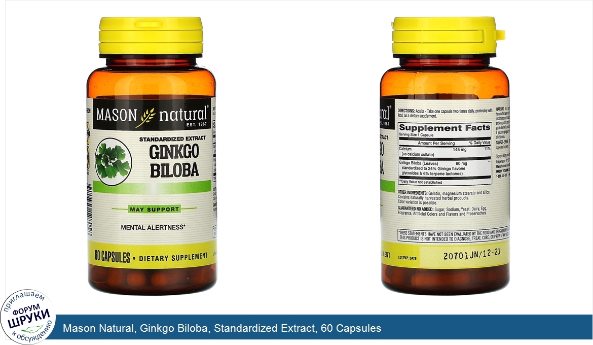 Друзья, если у вас есть отзыв/дополнение/комментарий/вопрос относительно Mason Natural, Ginkgo Biloba, Standardized Extract, 60 Capsules - напишите его ответом в эту тему (это будет полезно всему сообществу в целом и вам в отдельности).