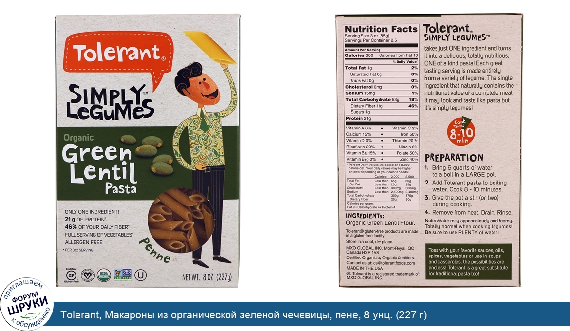Друзья, если у вас есть отзыв/дополнение/комментарий/вопрос относительно Tolerant, Макароны из органической зеленой чечевицы, пене, 8 унц. (227 г) - напишите его ответом в эту тему (это будет полезно всему сообществу в целом и вам в отдельности).
