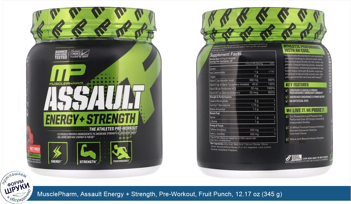Друзья, если у вас есть отзыв/дополнение/комментарий/вопрос относительно MusclePharm, Assault Energy + Strength, Pre-Workout, Fruit Punch, 12.17 oz (345 g) - напишите его ответом в эту тему (это будет полезно всему сообществу в целом и вам в отдельности).