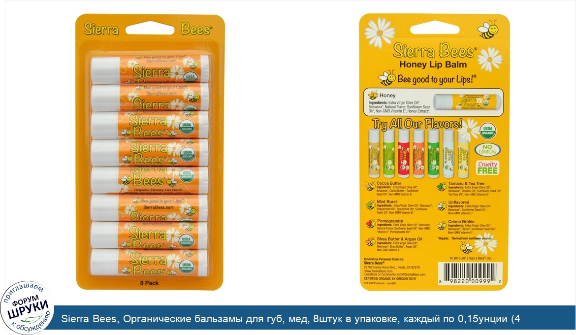Друзья, если у вас есть отзыв/дополнение/комментарий/вопрос относительно Sierra Bees, Органические бальзамы для губ, мед, 8штук в упаковке, каждый по 0,15унции (4,25г) - напишите его ответом в эту тему (это будет полезно всему сообществу в целом и вам в отдельности).