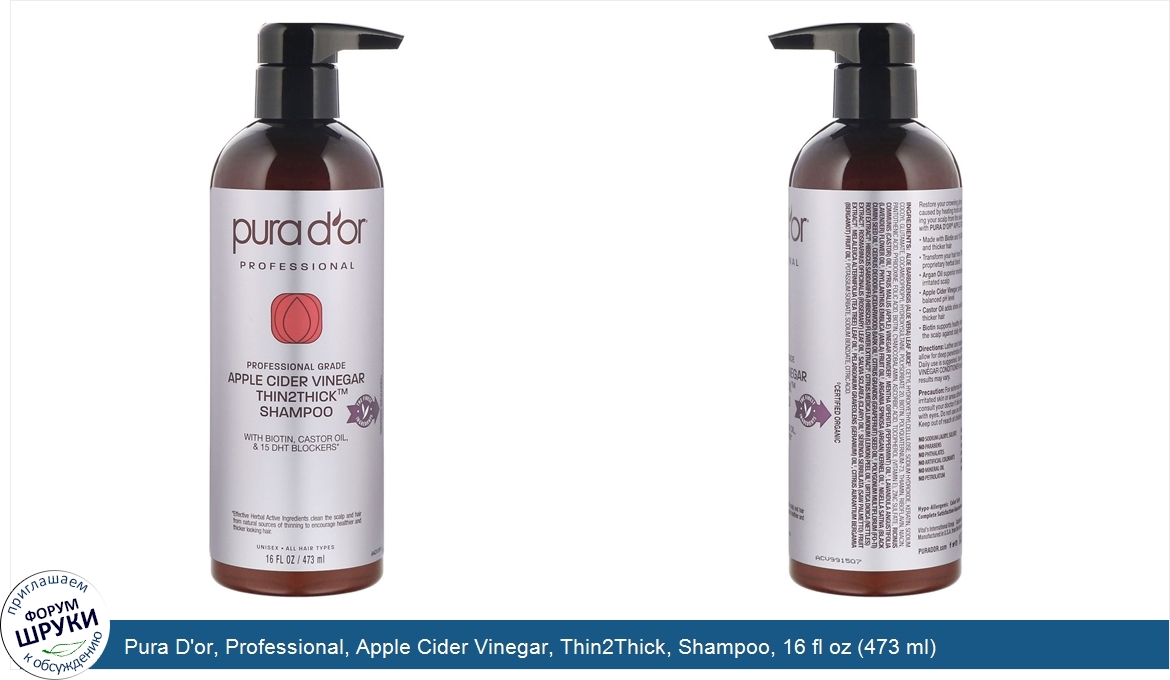 Друзья, если у вас есть отзыв/дополнение/комментарий/вопрос относительно Pura D'or, Professional, Apple Cider Vinegar, Thin2Thick, Shampoo, 16 fl oz (473 ml) - напишите его ответом в эту тему (это будет полезно всему сообществу в целом и вам в отдельности).