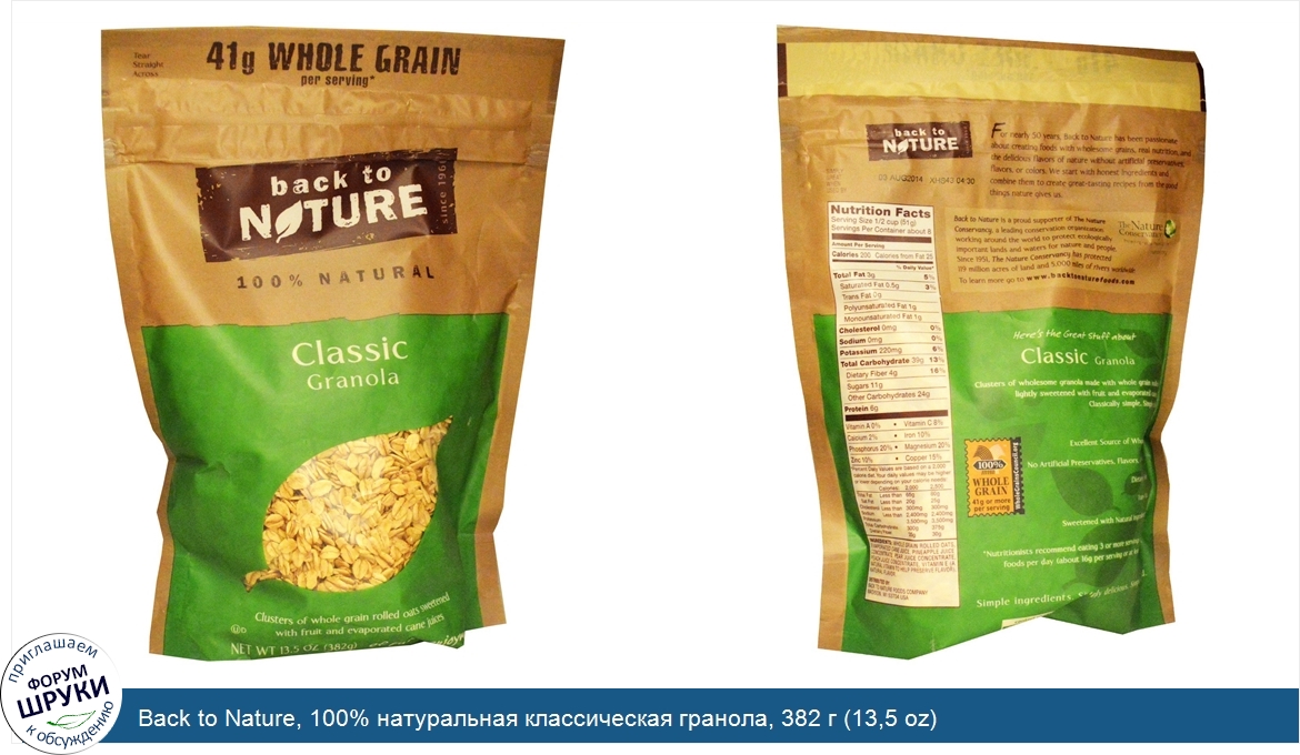 Back to Nature, 100% натуральная классическая гранола, 382 г (13,5 oz)