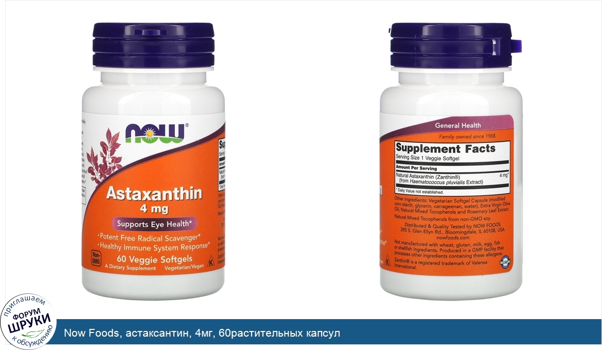 Друзья, если у вас есть отзыв/дополнение/комментарий/вопрос относительно Now Foods, астаксантин, 4мг, 60растительных капсул - напишите его ответом в эту тему (это будет полезно всему сообществу в целом и вам в отдельности).