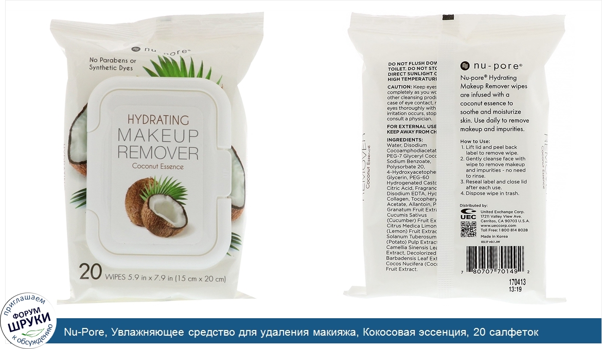 Друзья, если у вас есть отзыв/дополнение/комментарий/вопрос относительно Nu-Pore, Увлажняющее средство для удаления макияжа, Кокосовая эссенция, 20 салфеток - напишите его ответом в эту тему (это будет полезно всему сообществу в целом и вам в отдельности).