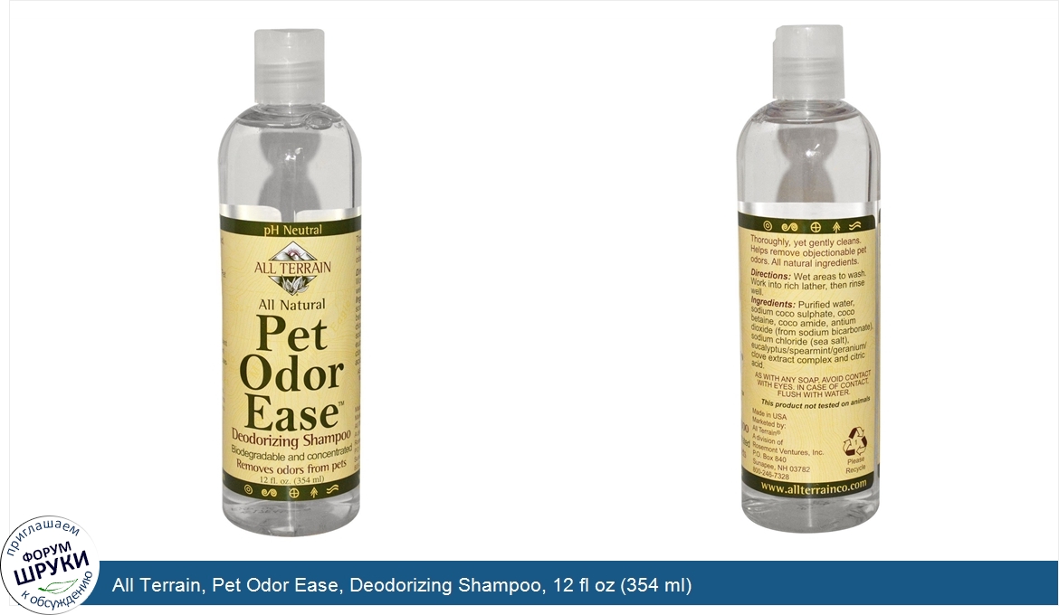 Друзья, если у вас есть отзыв/дополнение/комментарий/вопрос относительно All Terrain, Pet Odor Ease, Deodorizing Shampoo, 12 fl oz (354 ml) - напишите его ответом в эту тему (это будет полезно всему сообществу в целом и вам в отдельности).