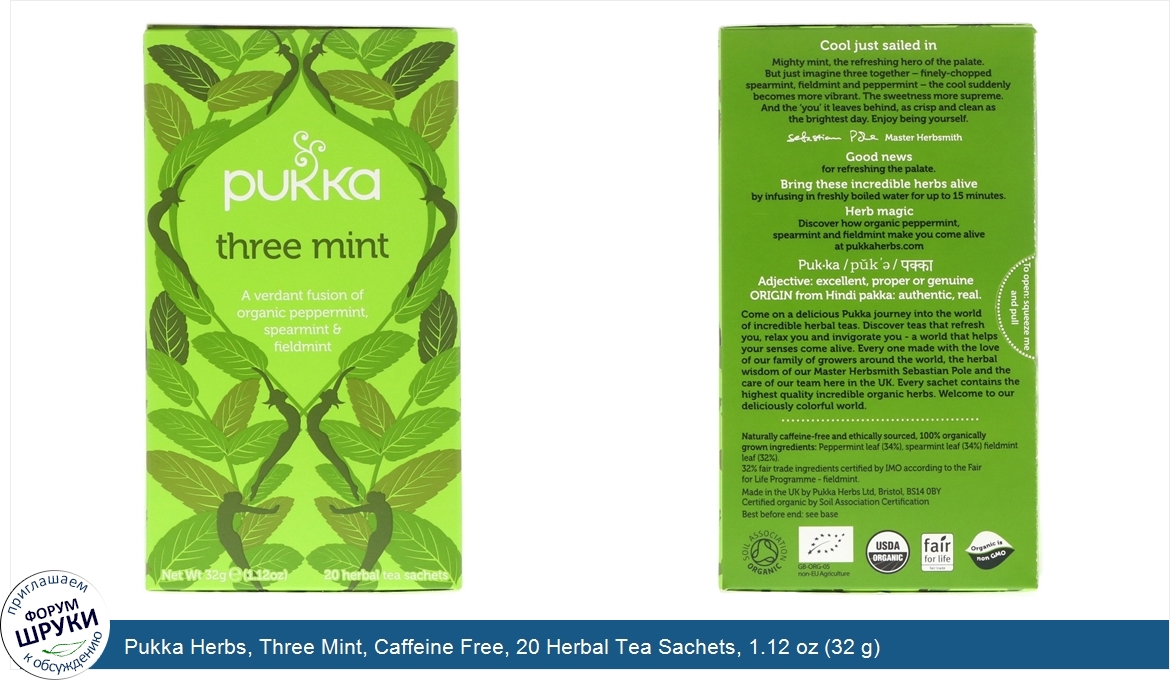 Друзья, если у вас есть отзыв/дополнение/комментарий/вопрос относительно Pukka Herbs, Three Mint, Caffeine Free, 20 Herbal Tea Sachets, 1.12 oz (32 g) - напишите его ответом в эту тему (это будет полезно всему сообществу в целом и вам в отдельности).