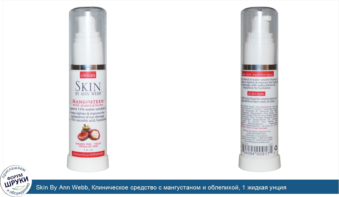 Друзья, если у вас есть отзыв/дополнение/комментарий/вопрос относительно Skin By Ann Webb, Клиническое средство с мангустаном и облепихой, 1 жидкая унция - напишите его ответом в эту тему (это будет полезно всему сообществу в целом и вам в отдельности).