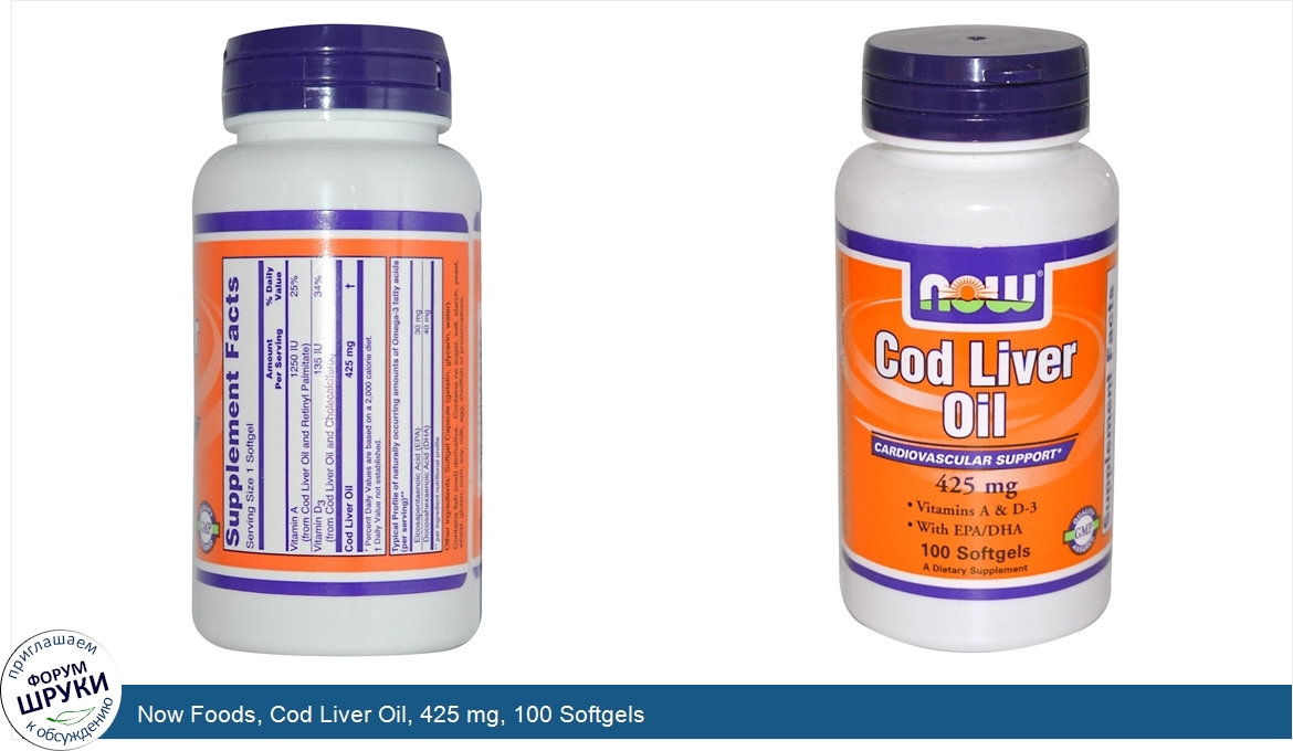Друзья, если у вас есть отзыв/дополнение/комментарий/вопрос относительно Now Foods, Cod Liver Oil, 425 mg, 100 Softgels - напишите его ответом в эту тему (это будет полезно всему сообществу в целом и вам в отдельности).