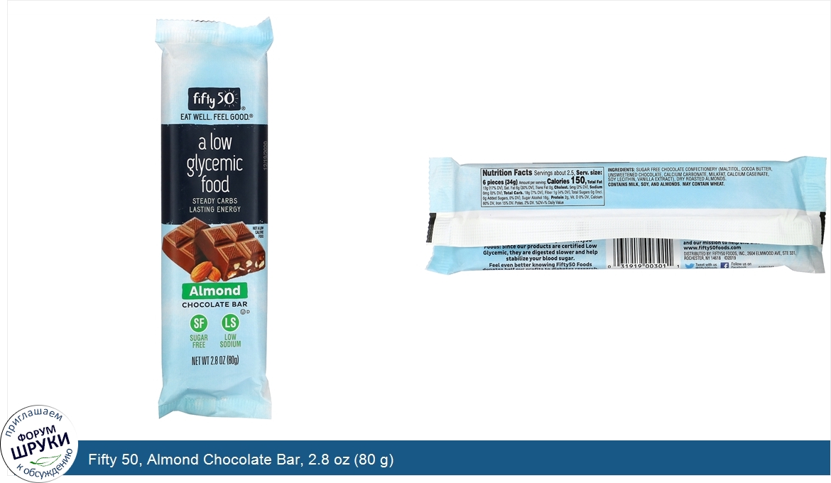 Друзья, если у вас есть отзыв/дополнение/комментарий/вопрос относительно Fifty 50, Almond Chocolate Bar, 2.8 oz (80 g) - напишите его ответом в эту тему (это будет полезно всему сообществу в целом и вам в отдельности).