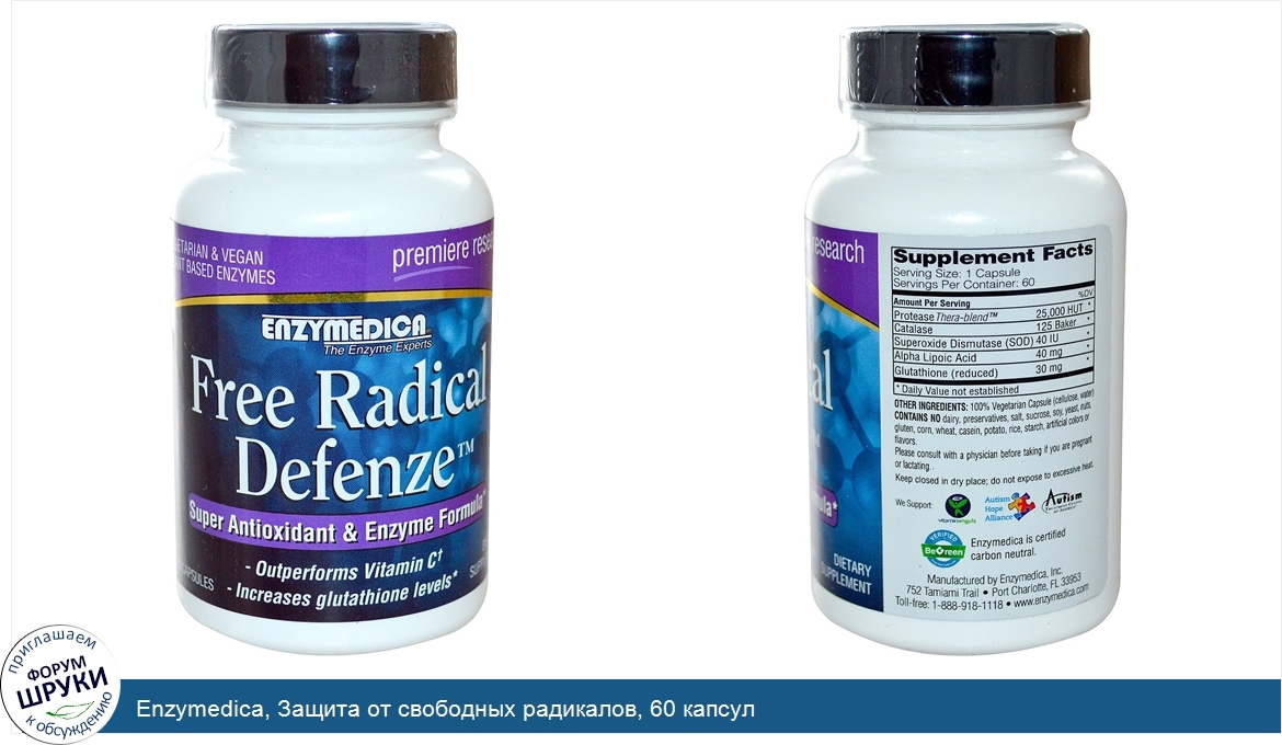 Друзья, если у вас есть отзыв/дополнение/комментарий/вопрос относительно Enzymedica, Защита от свободных радикалов, 60 капсул - напишите его ответом в эту тему (это будет полезно всему сообществу в целом и вам в отдельности).