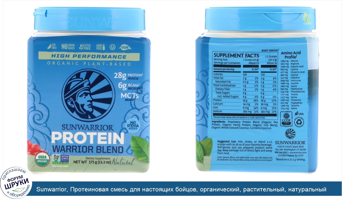 Друзья, если у вас есть отзыв/дополнение/комментарий/вопрос относительно Sunwarrior, Протеиновая смесь для настоящих бойцов, органический, растительный, натуральный вкус, 13,2 унции (375 г) - напишите его ответом в эту тему (это будет полезно всему сообществу в целом и вам в отдельности).