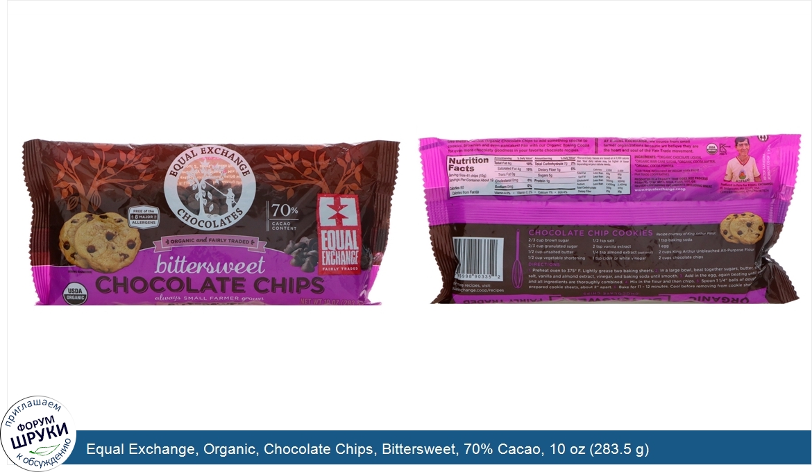Друзья, если у вас есть отзыв/дополнение/комментарий/вопрос относительно Equal Exchange, Organic, Chocolate Chips, Bittersweet, 70% Cacao, 10 oz (283.5 g) - напишите его ответом в эту тему (это будет полезно всему сообществу в целом и вам в отдельности).
