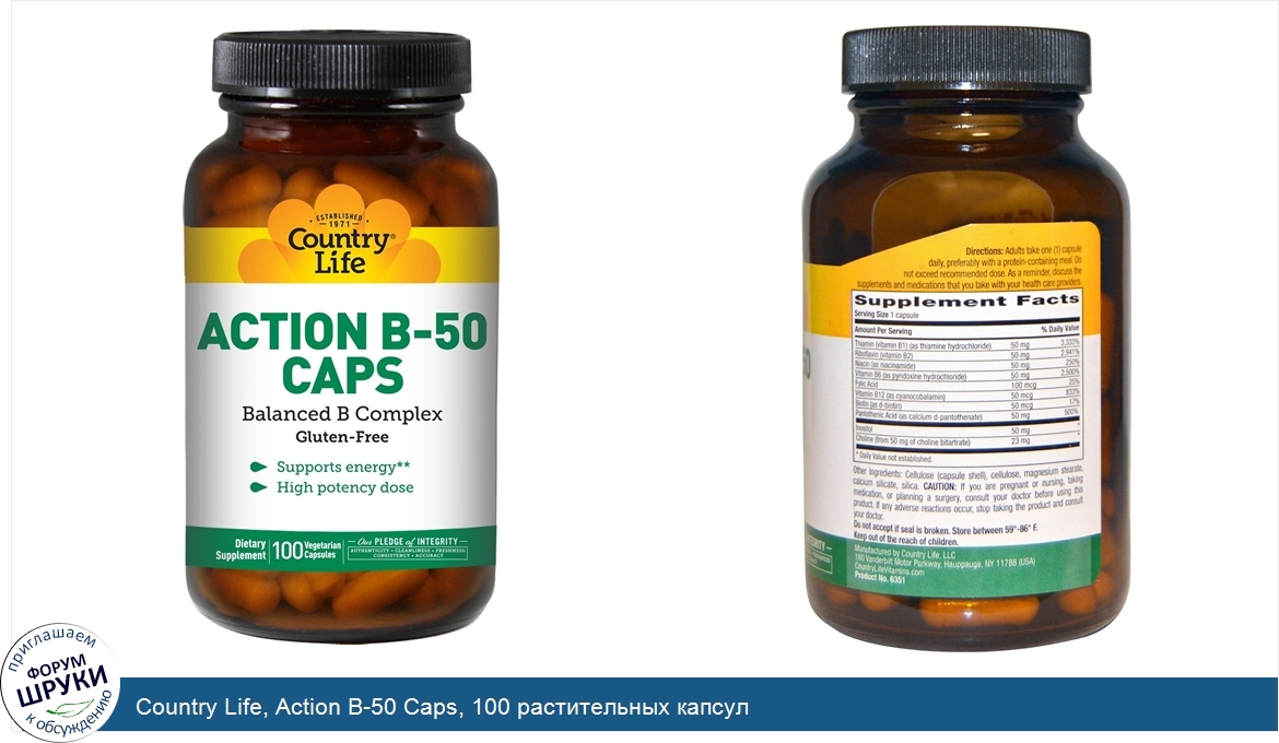 Друзья, если у вас есть отзыв/дополнение/комментарий/вопрос относительно Country Life, Action B-50 Caps, 100 растительных капсул - напишите его ответом в эту тему (это будет полезно всему сообществу в целом и вам в отдельности).