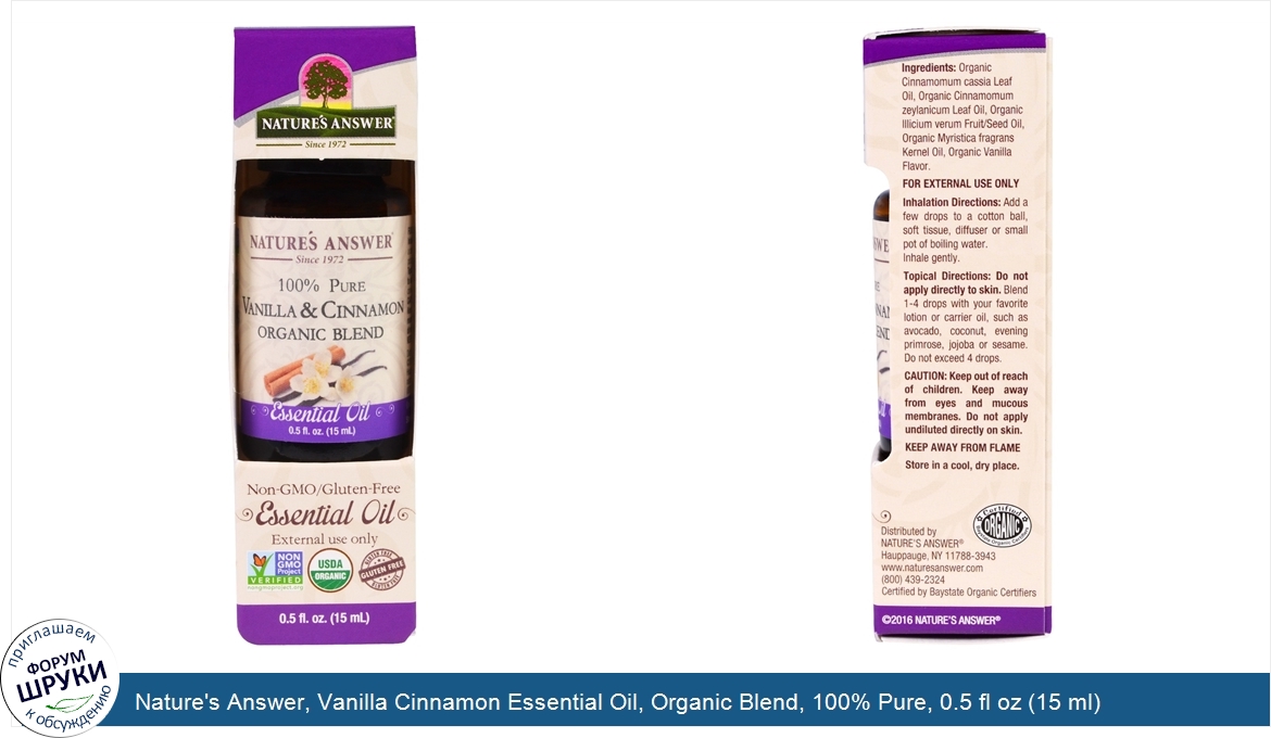 Nature's Answer, Vanilla Cinnamon Essential Oil, Organic Blend, 100% Pure, 0.5 fl oz (15 ml)