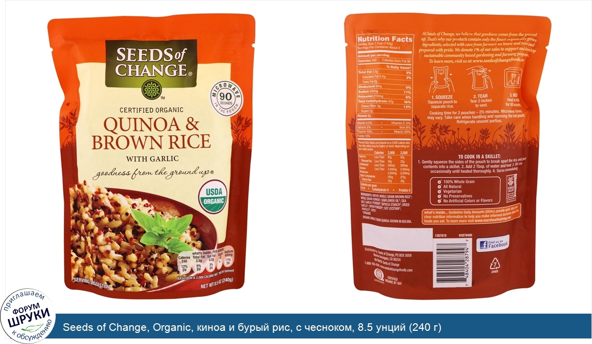 Seeds of Change, Organic, киноа и бурый рис, с чесноком, 8.5 унций (240 г)
