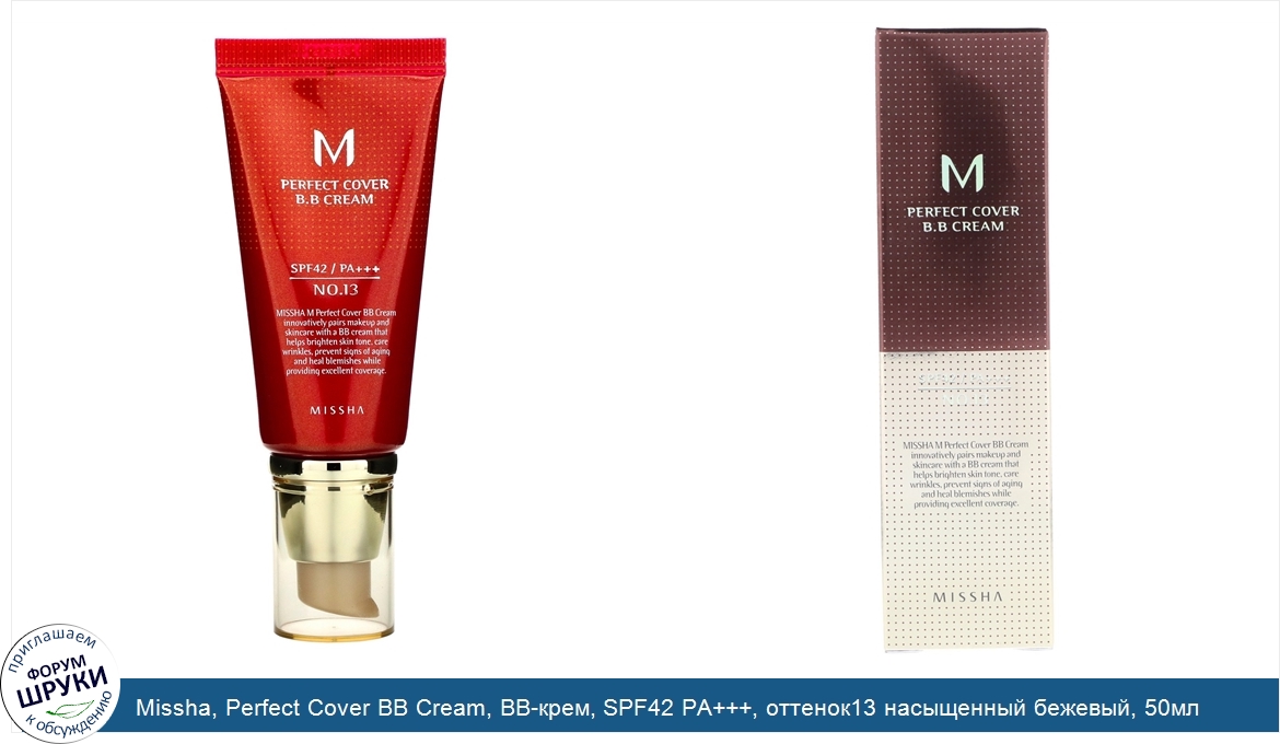 Missha, Perfect Cover BB Cream, BB-крем, SPF42 PA+++, оттенок13 насыщенный бежевый, 50мл