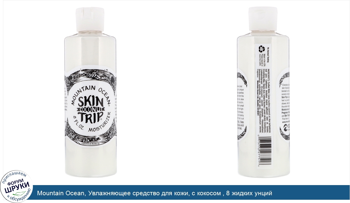 Друзья, если у вас есть отзыв/дополнение/комментарий/вопрос относительно Mountain Ocean, Увлажняющее средство для кожи, с кокосом , 8 жидких унций - напишите его ответом в эту тему (это будет полезно всему сообществу в целом и вам в отдельности).
