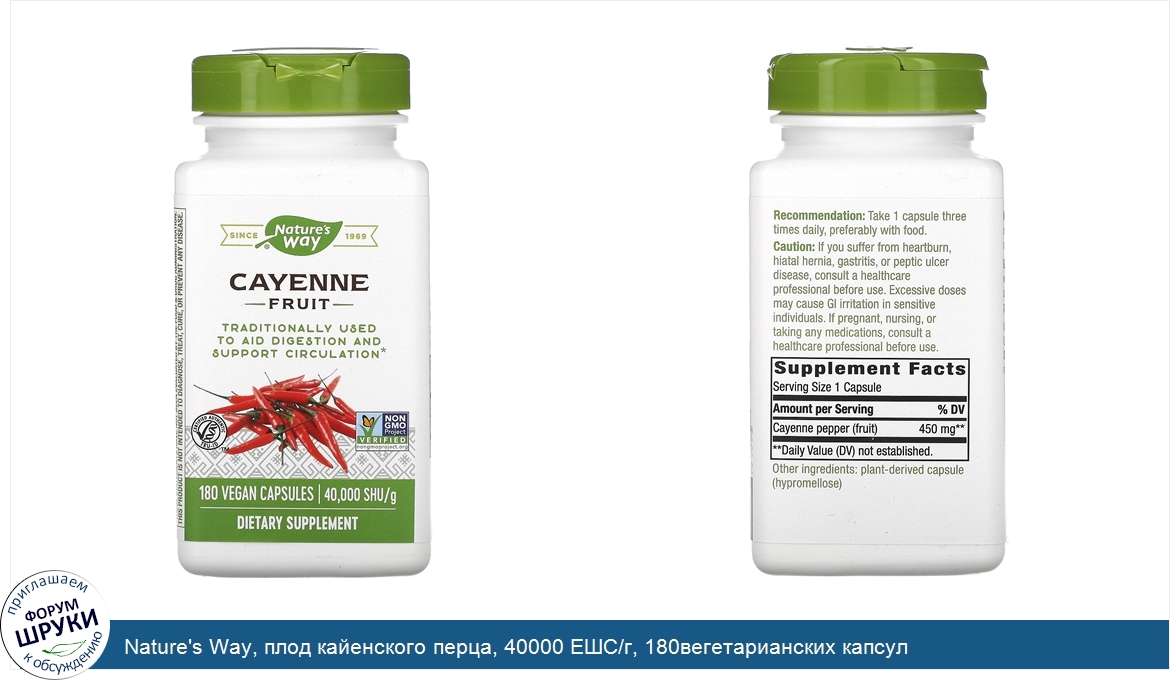 ru Nature's Way, плод кайенского перца, 40000 ЕШС/г, 180вегетарианских капсул