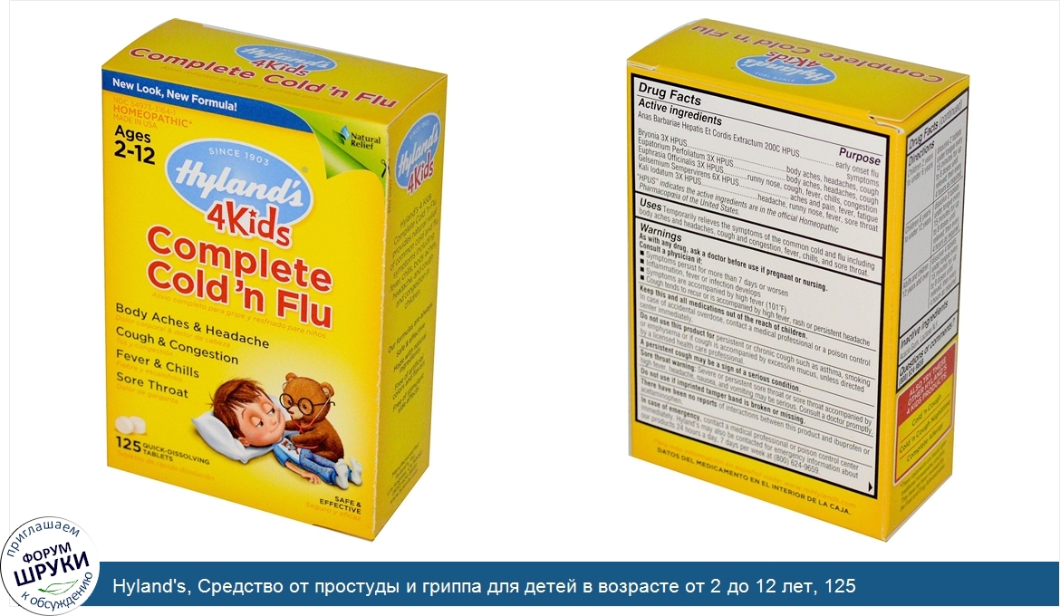Друзья, если у вас есть отзыв/дополнение/комментарий/вопрос относительно Hyland's, Средство от простуды и гриппа для детей в возрасте от 2 до 12 лет, 125 быстрорастворимых таблеток - напишите его ответом в эту тему (это будет полезно всему сообществу в целом и вам в отдельности).