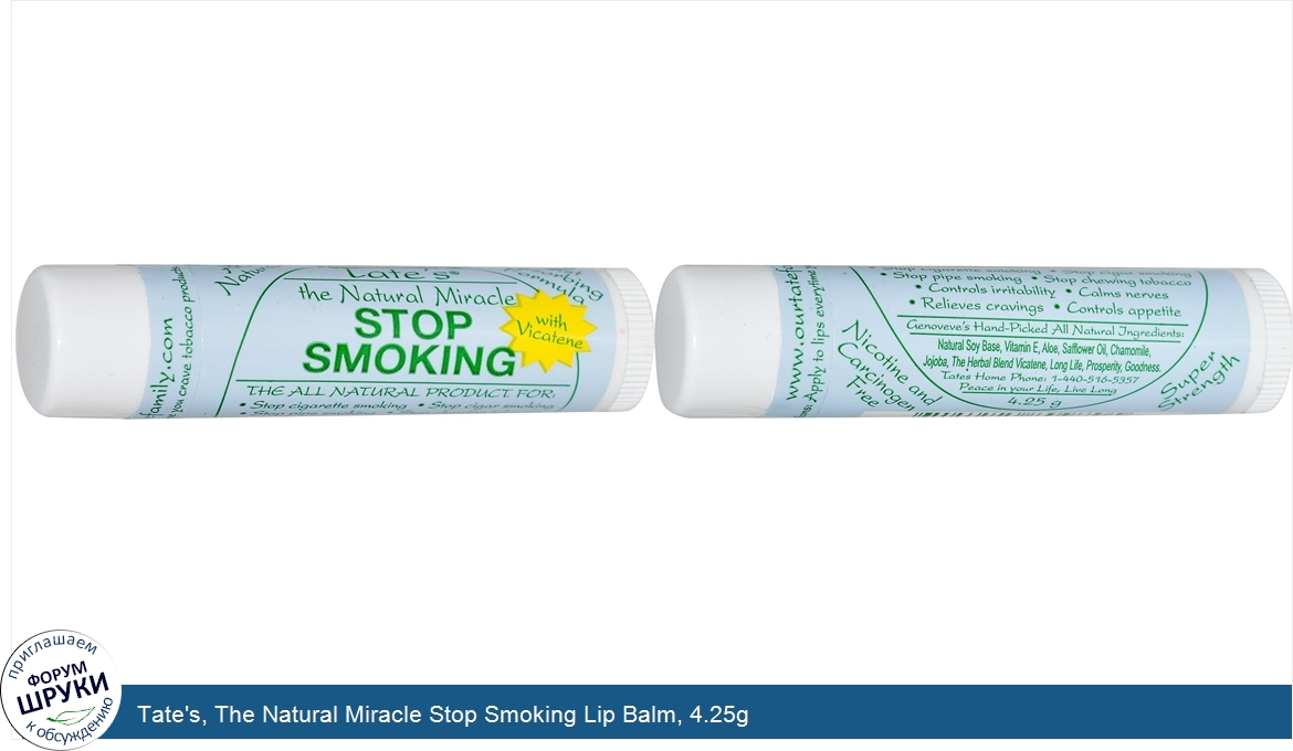 Друзья, если у вас есть отзыв/дополнение/комментарий/вопрос относительно Tate's, The Natural Miracle Stop Smoking Lip Balm, 4.25g - напишите его ответом в эту тему (это будет полезно всему сообществу в целом и вам в отдельности).