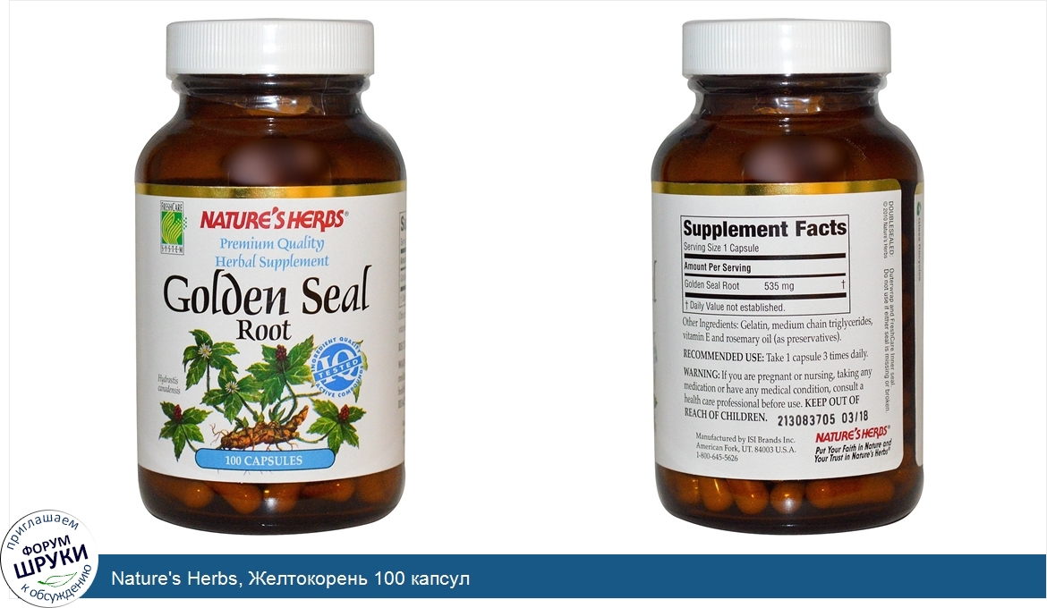 Nature's Herbs, Желтокорень 100 капсул