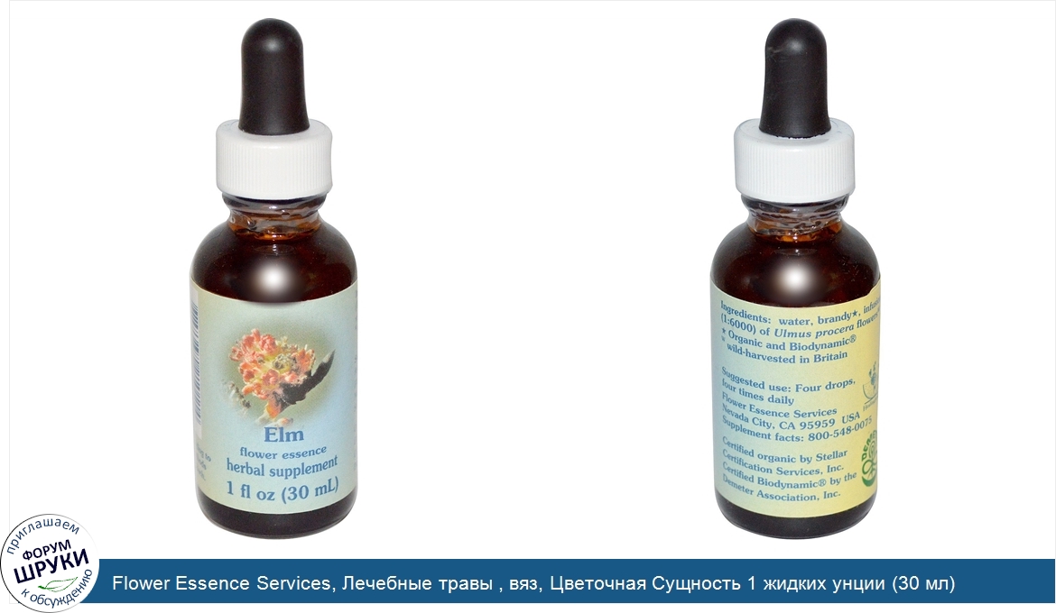 Flower Essence Services, Лечебные травы , вяз, Цветочная Сущность 1 жидких унции (30 мл)