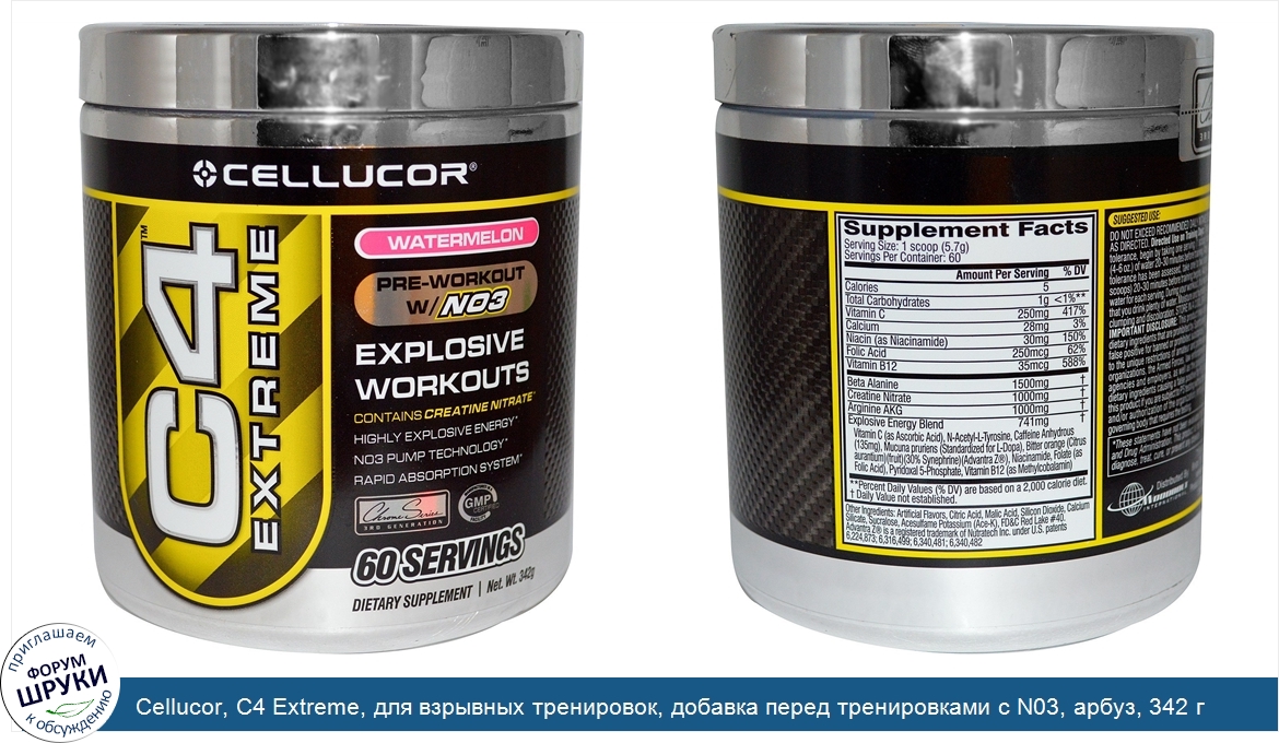 Друзья, если у вас есть отзыв/дополнение/комментарий/вопрос относительно Cellucor, C4 Extreme, для взрывных тренировок, добавка перед тренировками с N03, арбуз, 342 г - напишите его ответом в эту тему (это будет полезно всему сообществу в целом и вам в отдельности).