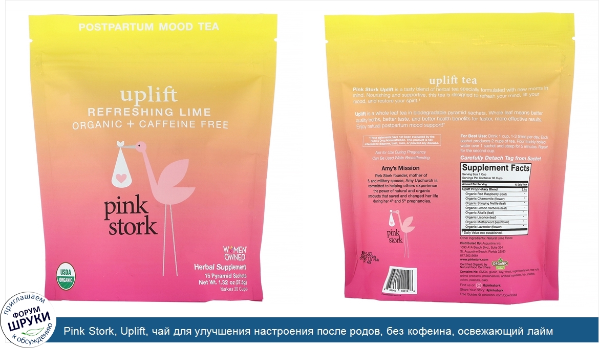 [DESCRIPT]Органический продукт + не содержит кофеина. Сертификат USDA Organic. Растительная добавка. Органический продукт: сертификат лаборатории Natural Food Certifiers. Uplift от Pink Stork — это вкусная травяная чайная смесь, разработанная специально для свежеиспеченных мам. Этот питательный чай освежит ваш разум, поднимет настроение и восстановит душевные силы. Uplift — это цельнолистовой чай в биоразлагаемых саше-пирамидках. Цельные листья — это травы более высокого качества, улучшенный вкус и больше преимуществ для здоровья, что обеспечивает более быстрый и эффективный результат. Природное средство для улучшения настроения после родов. Цель Эми. Эми Апчерч, учредительница компании Pink Stork, мать пятерых детей и жена военного, стремится помочь другим людям испытать силу натуральных и органических продуктов, которые сохранили и изменили ее жизнь во время четвертой и пятой беременностей.[/DESCRIPT]... (описание дополняется)