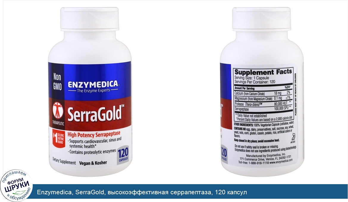 Друзья, если у вас есть отзыв/дополнение/комментарий/вопрос относительно Enzymedica, SerraGold, высокоэффективная серрапептаза, 120 капсул - напишите его ответом в эту тему (это будет полезно всему сообществу в целом и вам в отдельности).