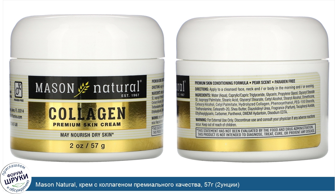 Mason Natural, крем с коллагеном премиального качества, 57г (2унции)