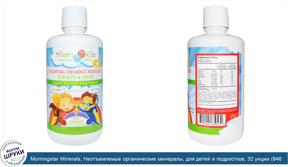Друзья, если у вас есть отзыв/дополнение/комментарий/вопрос относительно Morningstar Minerals, Неотъемлемые органические минералы, для детей и подростков, 32 унции (946 мл) - напишите его ответом в эту тему (это будет полезно всему сообществу в целом и вам в отдельности).