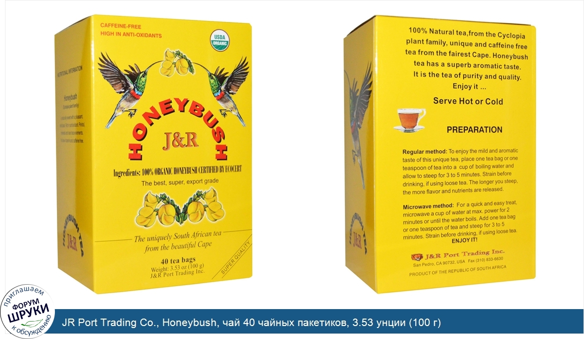 ru JR Port Trading Co., Honeybush, чай 40 чайных пакетиков, 3.53 унции (100 г)