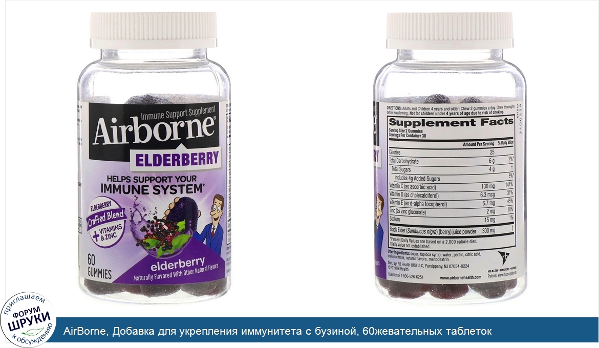 AirBorne, Добавка для укрепления иммунитета с бузиной, 60жевательных таблеток