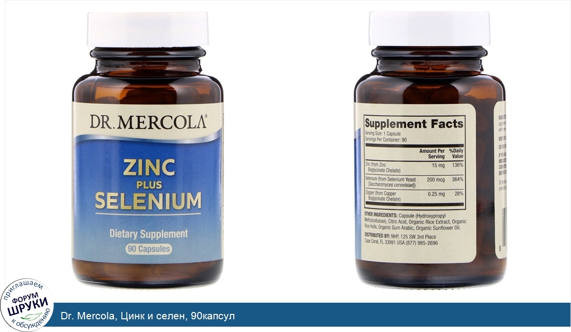 Dr. Mercola, Цинк и селен, 90капсул