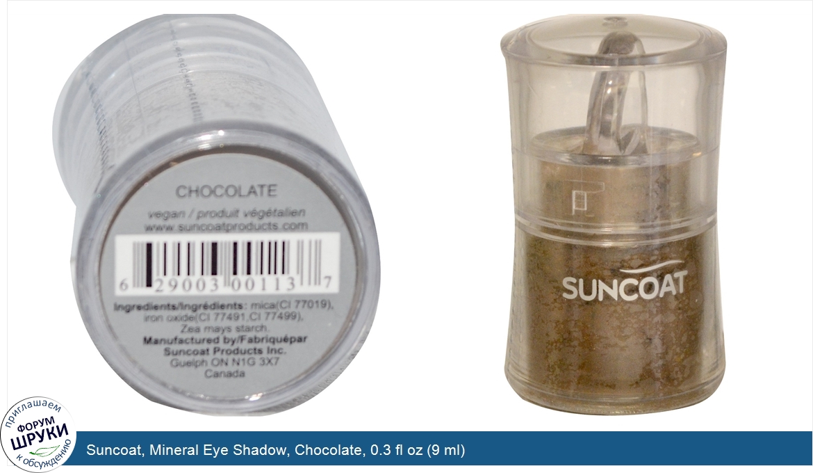 Друзья, если у вас есть отзыв/дополнение/комментарий/вопрос относительно Suncoat, Mineral Eye Shadow, Chocolate, 0.3 fl oz (9 ml) - напишите его ответом в эту тему (это будет полезно всему сообществу в целом и вам в отдельности).