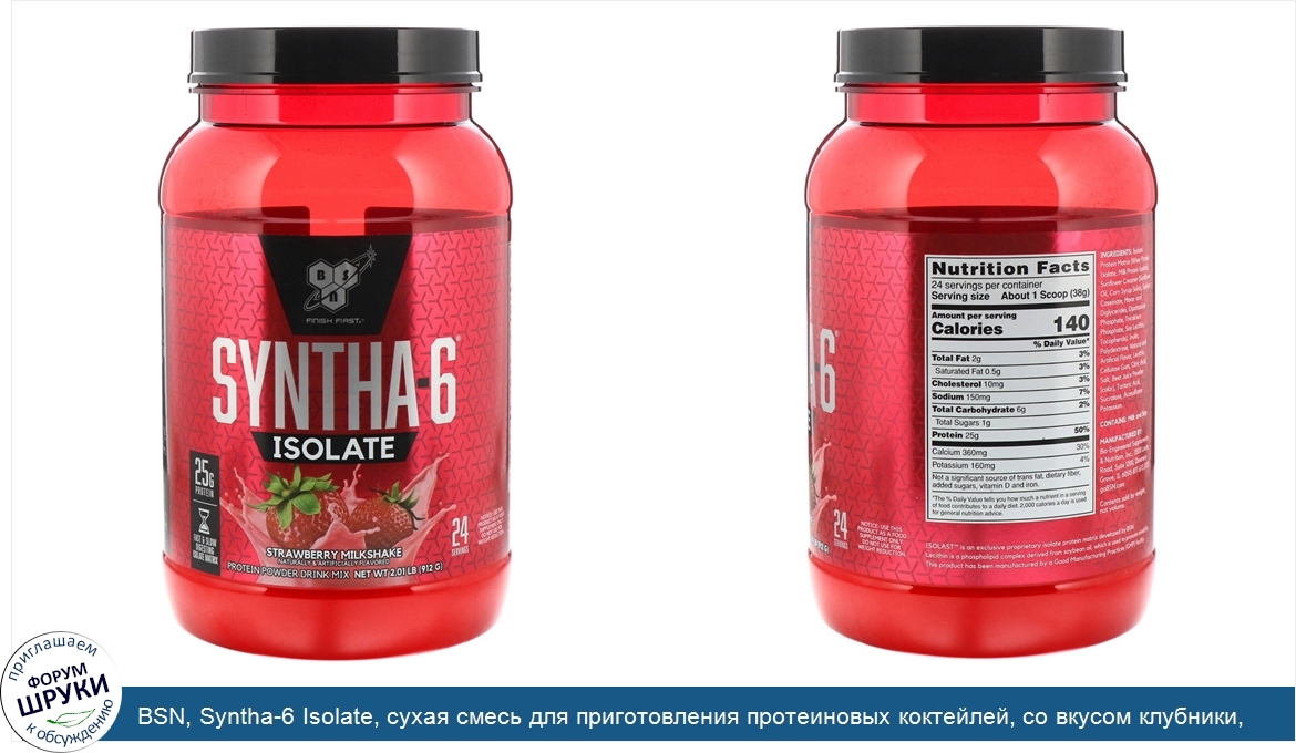 Друзья, если у вас есть отзыв/дополнение/комментарий/вопрос относительно BSN, Syntha-6 Isolate, сухая смесь для приготовления протеиновых коктейлей, со вкусом клубники, 912г (2,01фунтов) - напишите его ответом в эту тему (это будет полезно всему сообществу в целом и вам в отдельности).