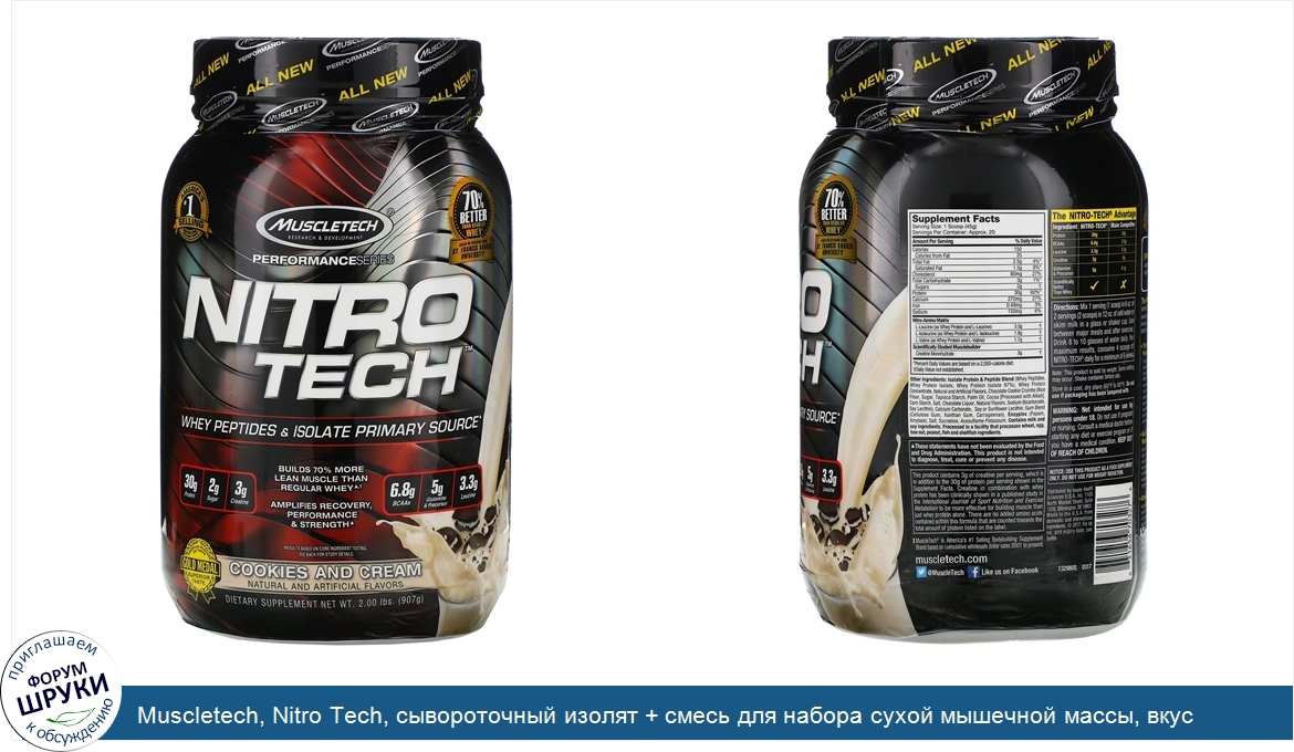 Друзья, если у вас есть отзыв/дополнение/комментарий/вопрос относительно Muscletech, Nitro Tech, сывороточный изолят + смесь для набора сухой мышечной массы, вкус печенья с кремом, 907г (2фунта) - напишите его ответом в эту тему (это будет полезно всему сообществу в целом и вам в отдельности).