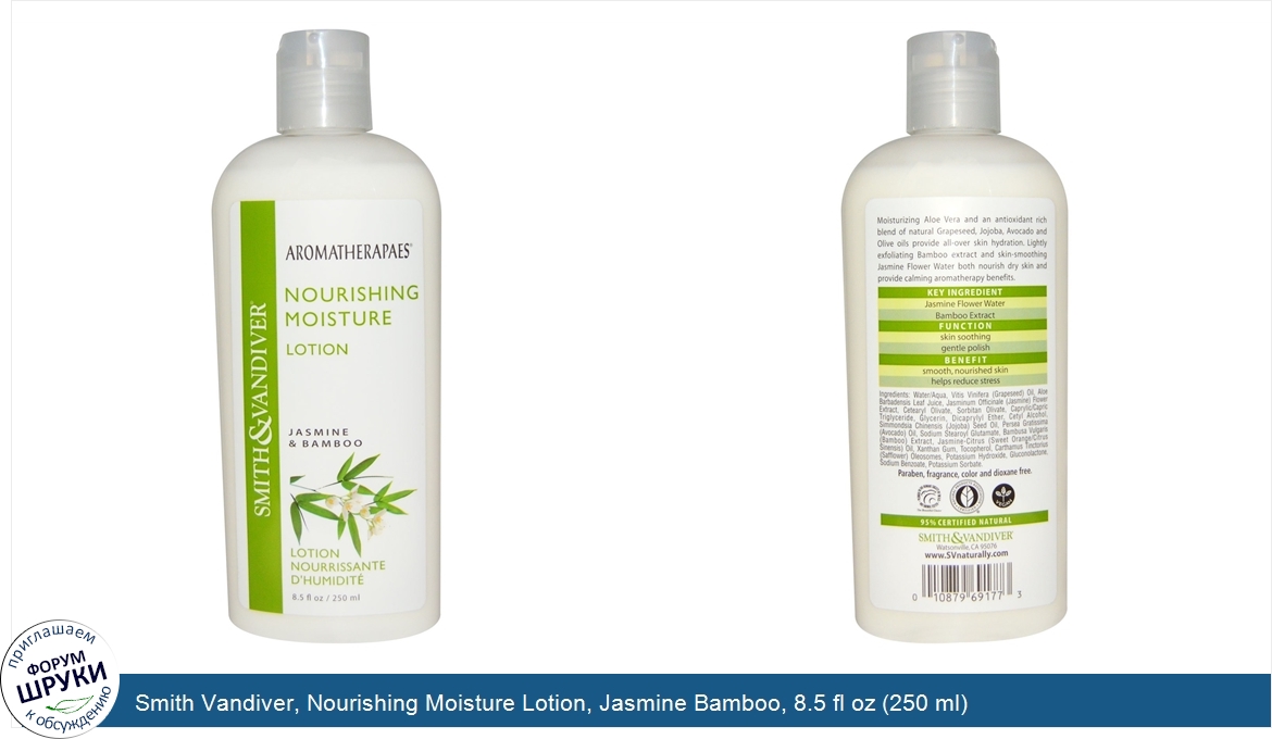 Друзья, если у вас есть отзыв/дополнение/комментарий/вопрос относительно Smith Vandiver, Nourishing Moisture Lotion, Jasmine Bamboo, 8.5 fl oz (250 ml) - напишите его ответом в эту тему (это будет полезно всему сообществу в целом и вам в отдельности).