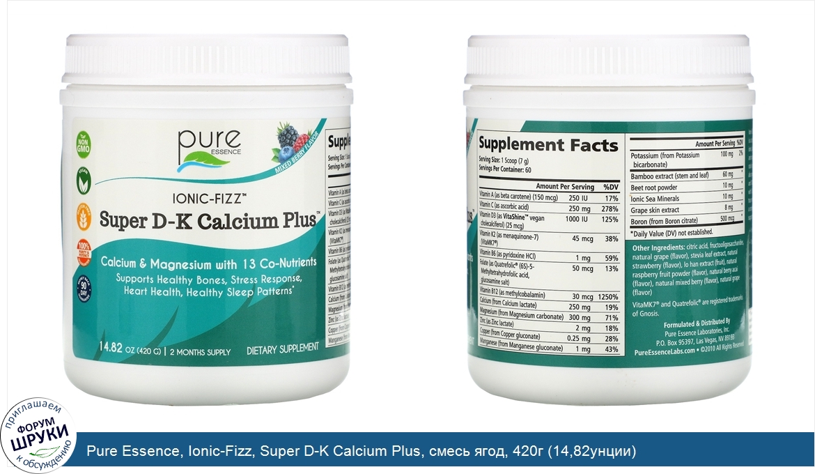 Друзья, если у вас есть отзыв/дополнение/комментарий/вопрос относительно Pure Essence, Ionic-Fizz, Super D-K Calcium Plus, смесь ягод, 420г (14,82унции) - напишите его ответом в эту тему (это будет полезно всему сообществу в целом и вам в отдельности).