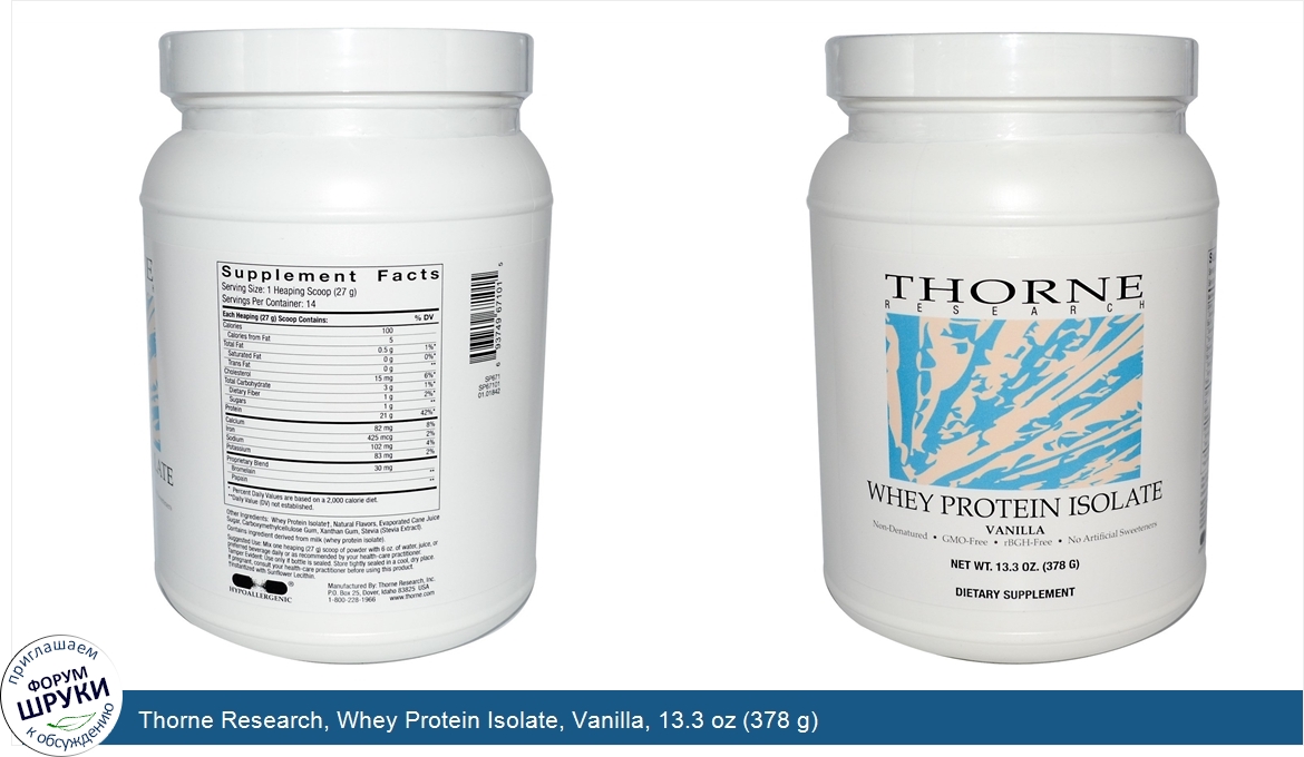 Друзья, если у вас есть отзыв/дополнение/комментарий/вопрос относительно Thorne Research, Whey Protein Isolate, Vanilla, 13.3 oz (378 g) - напишите его ответом в эту тему (это будет полезно всему сообществу в целом и вам в отдельности).