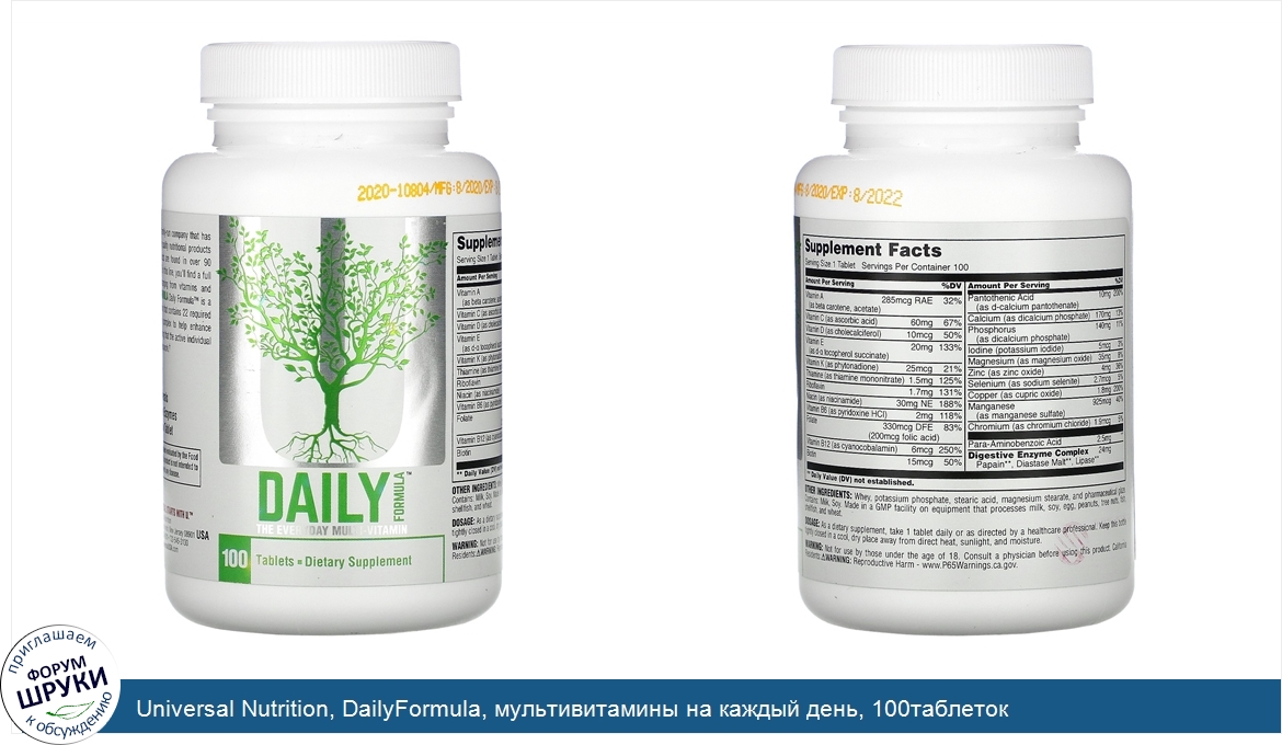 Друзья, если у вас есть отзыв/дополнение/комментарий/вопрос относительно Universal Nutrition, DailyFormula, мультивитамины на каждый день, 100таблеток - напишите его ответом в эту тему (это будет полезно всему сообществу в целом и вам в отдельности).