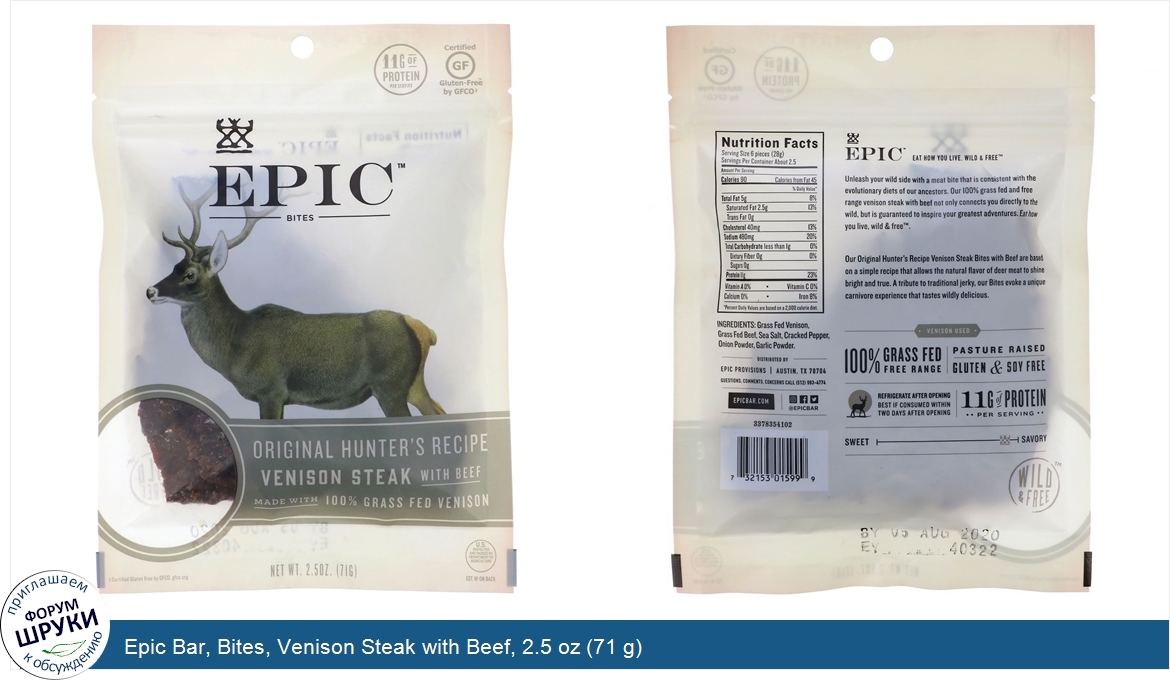Друзья, если у вас есть отзыв/дополнение/комментарий/вопрос относительно Epic Bar, Bites, Venison Steak with Beef, 2.5 oz (71 g) - напишите его ответом в эту тему (это будет полезно всему сообществу в целом и вам в отдельности).