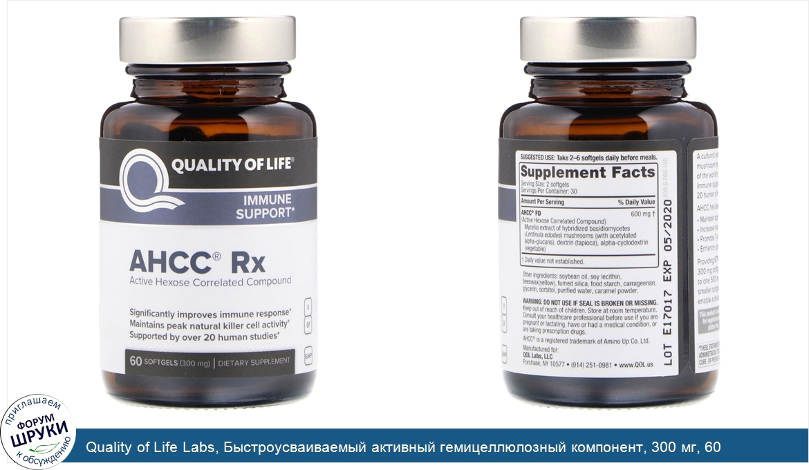 Категории: Quality of Life Labs, Пищевые добавки, Грибы, AHCC, Куалити оф Лайф Лэбс, 72790