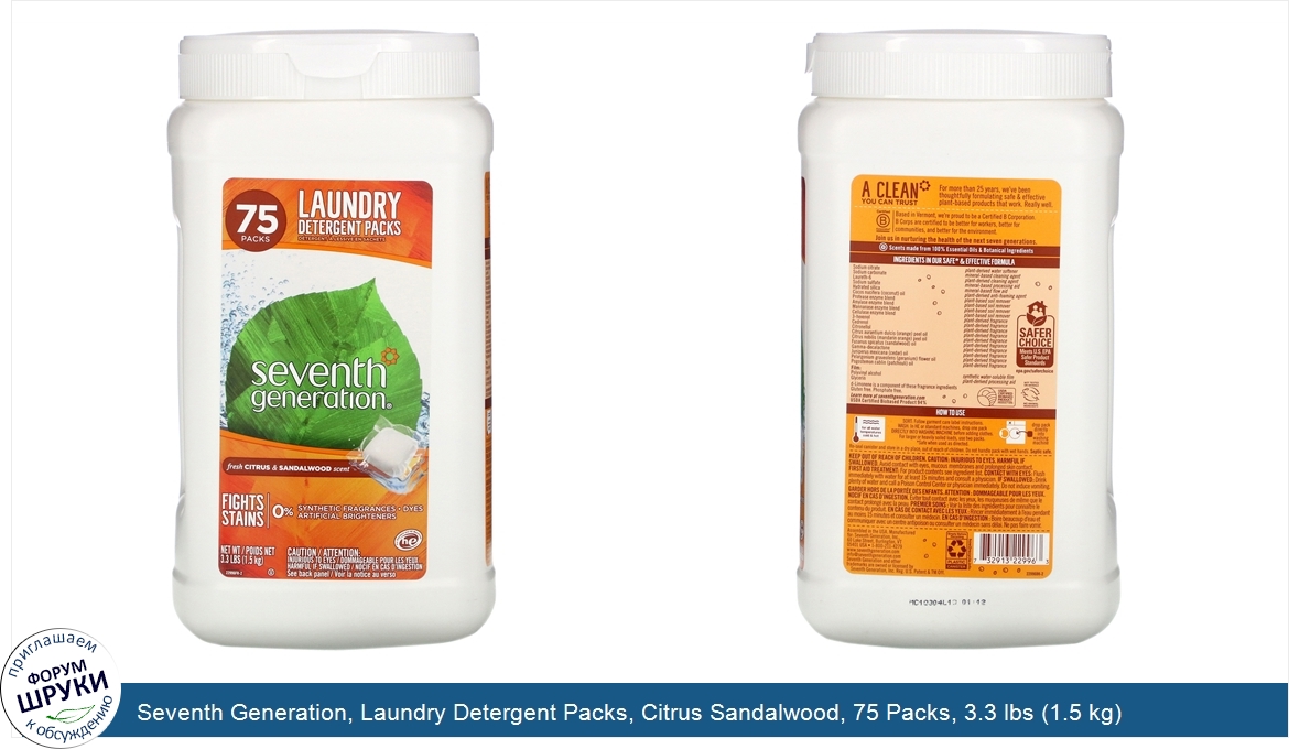 Друзья, если у вас есть отзыв/дополнение/комментарий/вопрос относительно Seventh Generation, Laundry Detergent Packs, Citrus Sandalwood, 75 Packs, 3.3 lbs (1.5 kg) - напишите его ответом в эту тему (это будет полезно всему сообществу в целом и вам в отдельности).