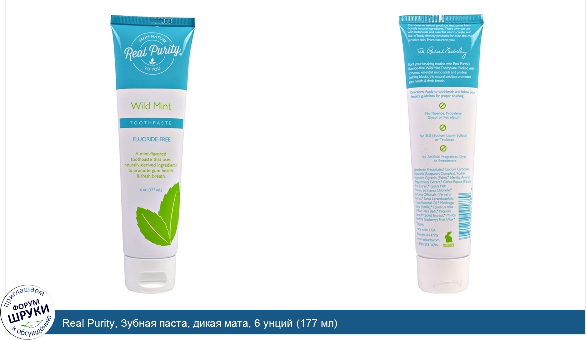 Друзья, если у вас есть отзыв/дополнение/комментарий/вопрос относительно Real Purity, Зубная паста, дикая мата, 6 унций (177 мл) - напишите его ответом в эту тему (это будет полезно всему сообществу в целом и вам в отдельности).