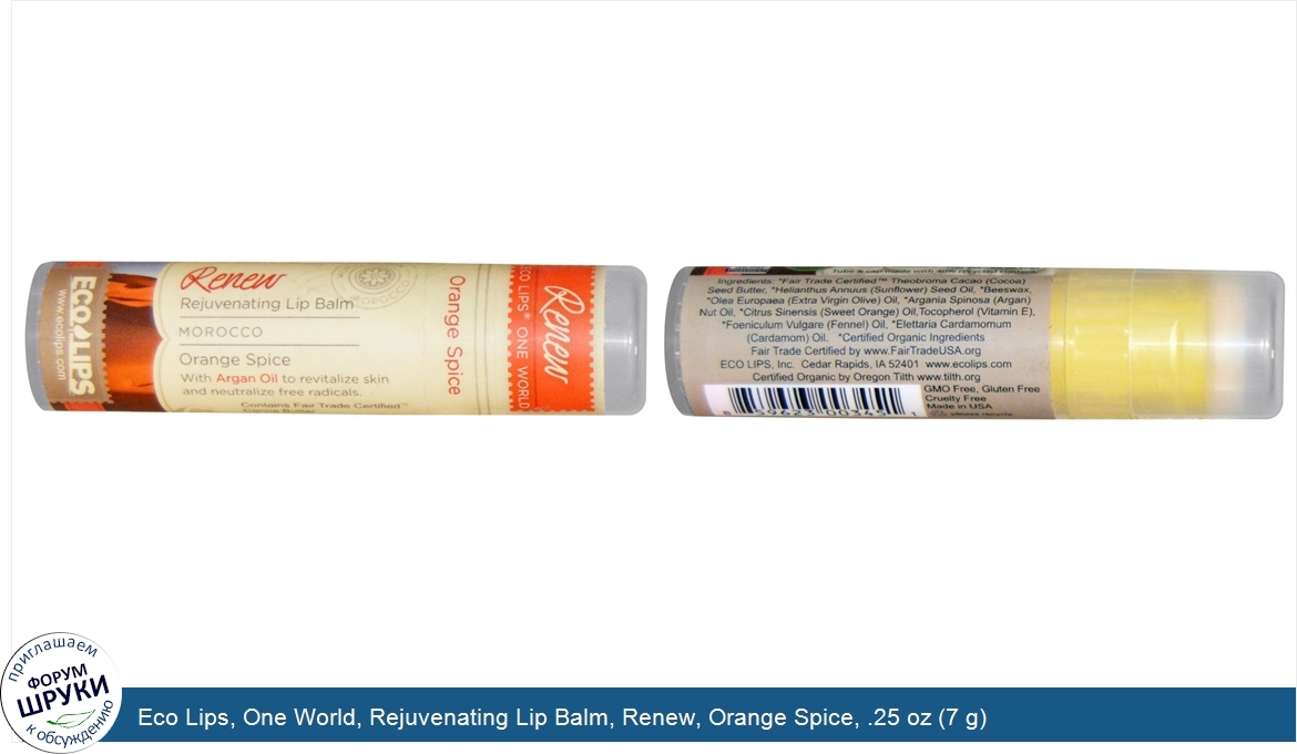 Друзья, если у вас есть отзыв/дополнение/комментарий/вопрос относительно Eco Lips, One World, Rejuvenating Lip Balm, Renew, Orange Spice, .25 oz (7 g) - напишите его ответом в эту тему (это будет полезно всему сообществу в целом и вам в отдельности).